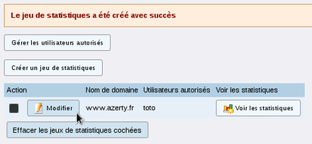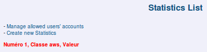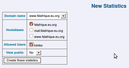 To create a statistic set, click the link "Web Statistics" then "Create a statistic set".