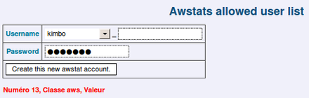 The "username" field contains at least your AlternC account name or a domain name installed on your account (here documentation). Use the dropdown menu using the black arrow at the right of the field. You can add a name after the first part of the login, this allows you to create as many accounts as you like.